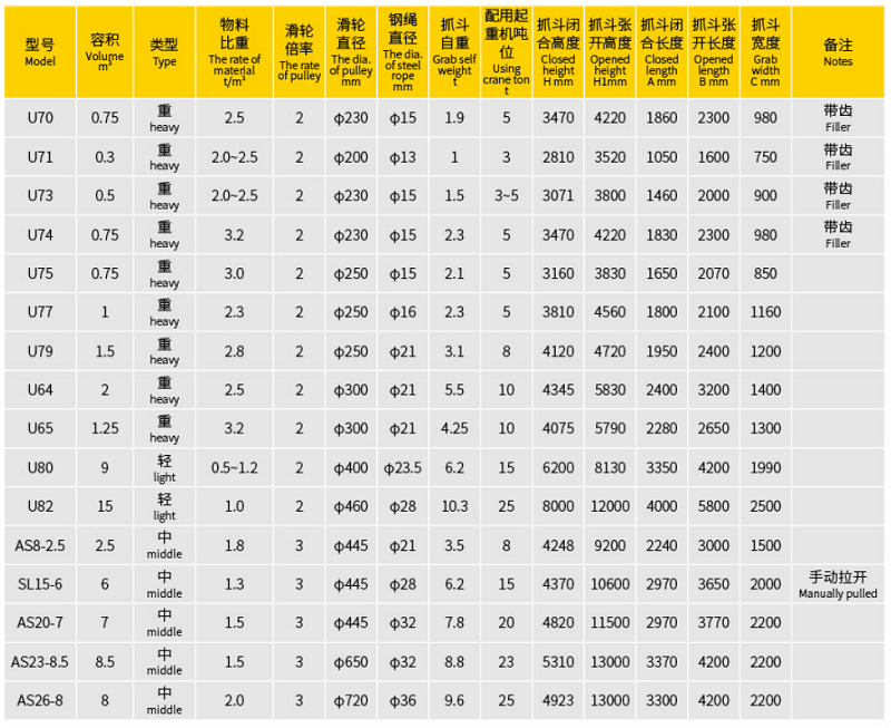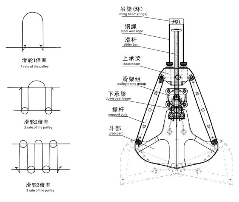 注:單繩抓斗無法空中張合,手拉式和遙控式可以實(shí)現(xiàn)在控制打開。
